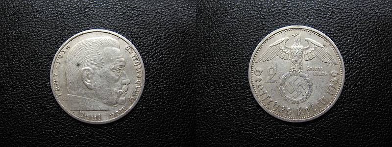 2 Reichmark 1939m.-- (Paul von Hindenburg)