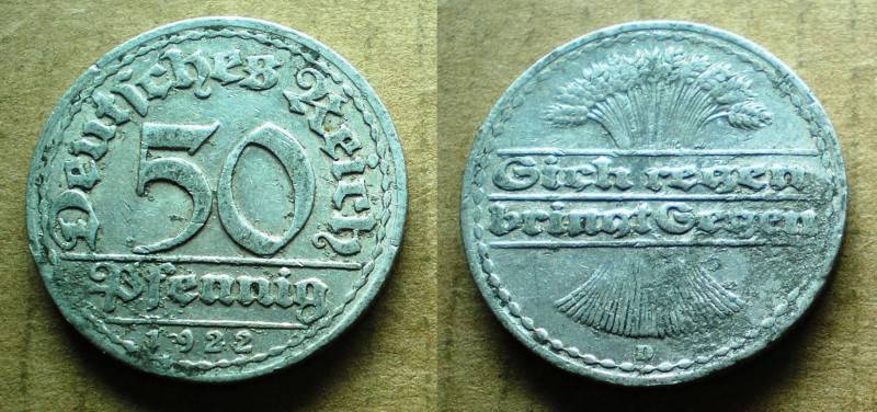 Vokietija 50 ReichsPfennig 1922D Nuo1LT