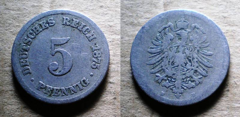 Vokietija 5 Pfennig 1875B Nuo.1 Lt