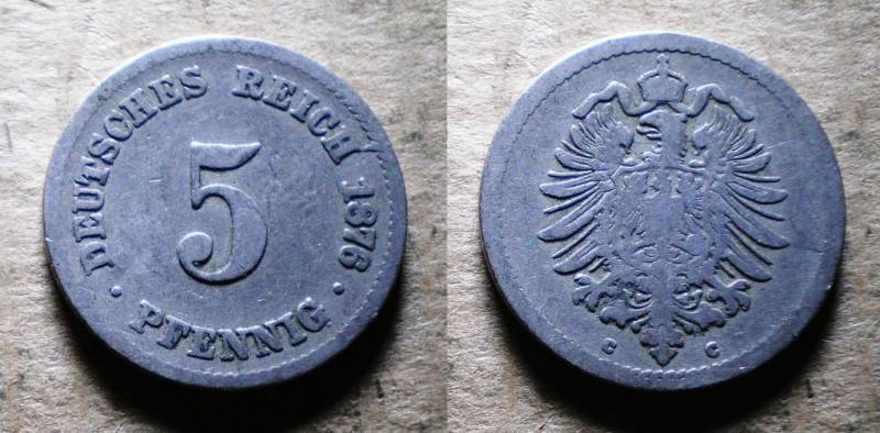 Vokietija 5 Pfennig 1876C Nuo.1 Lt