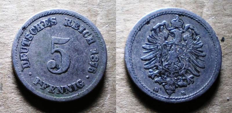 Vokietija 5 Pfennig 1876D Nuo.1 Lt
