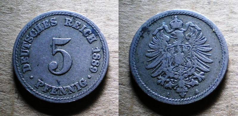 Vokietija 5 Pfennig 1889A Nuo.1 Lt