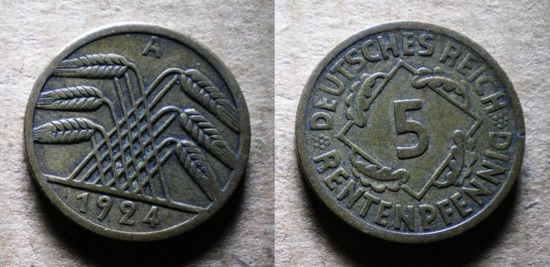 Vokietija 5 RentePfennig 1924A Puiki Nuo.1 Lt