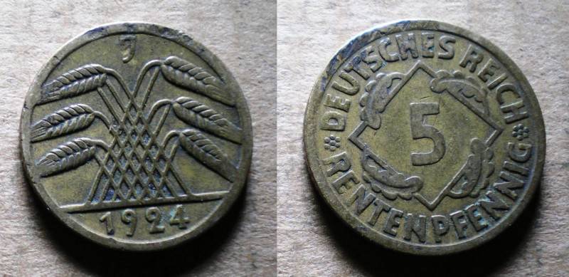 Vokietija 5 RentePfennig 1924J kt Nuo.1 Lt