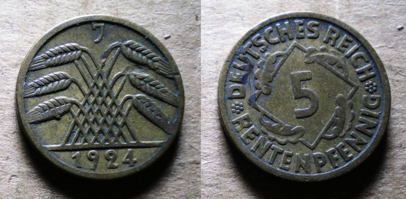 Vokietija 5 RentePfennig 1924J Puiki Nuo.1 Lt