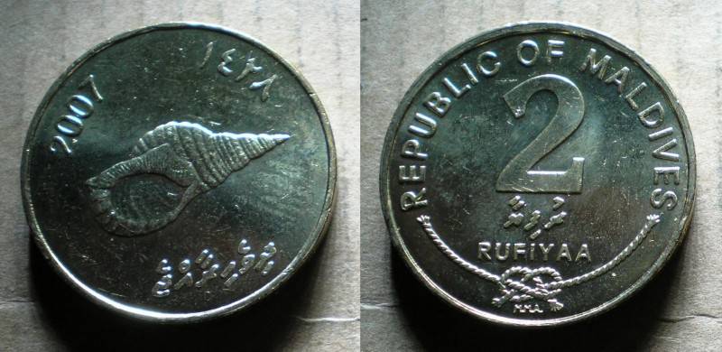 Maldyvai 2 Rufiyaa 2007 UNC Nuo.1 Lt