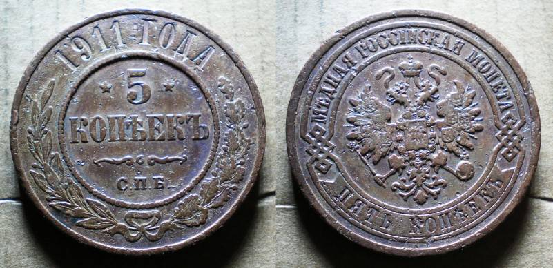 Rusija 5 Kop 1911 Retoka Nuo.1 Lt