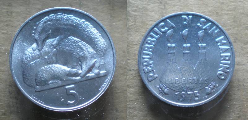 San Marinas 5 Liros 1975 UNC Nuo.1 Lt