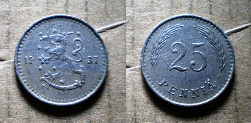 Suomija 25 Pennia 1937 Nuo.1 Lt