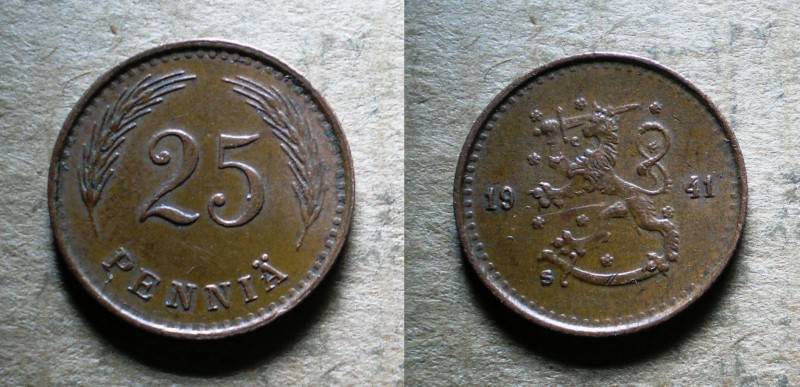 Suomija 25 Pennia 1941 Puiki Nuo.1 Lt