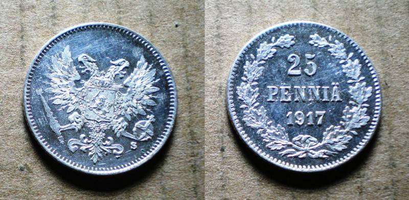 Rusija-Suomija 25 Pennia 1917 Sidabras Nuo.1 Lt