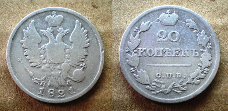 Rusija 20 Kop 1821/0 Retoka Sidabras Nuo 1 Lt
