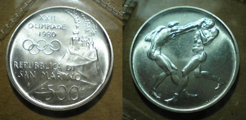 SanMarinas 500 Liru 1980 Sidabras OlimpUNC Nuo1 LT