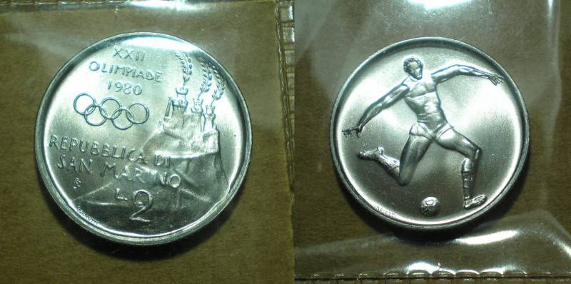 San Marinas 2 Liros 1980 Olimpiada UNC Nuo1 LT.