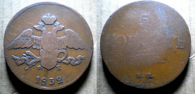Rusija 5 Kop 1832 Retoka Nuo1 LT.
