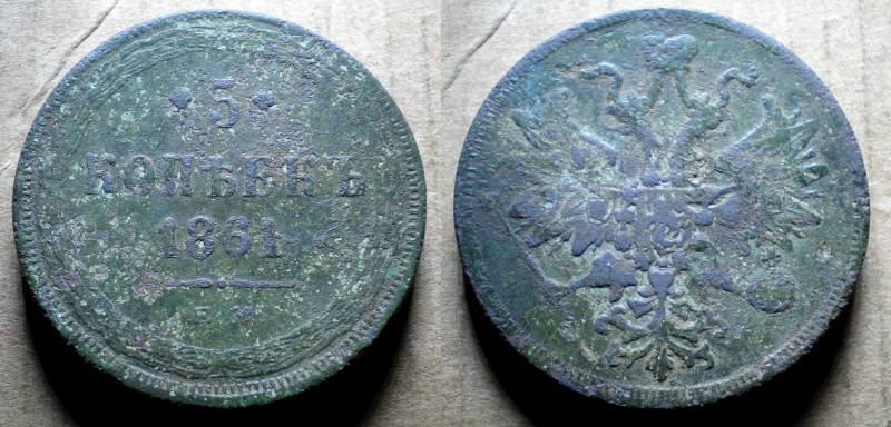 Rusija 5 Kop 1861 Retoka Nuo1 LT.