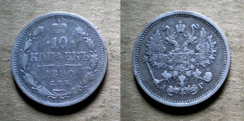 Rusija 10 Kop 1890 Sidabras Nuo1 LT.