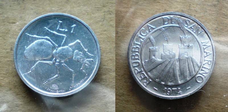 San Marinas 1 Lira 1974 Skruzdele UNC Nuo1 LT.