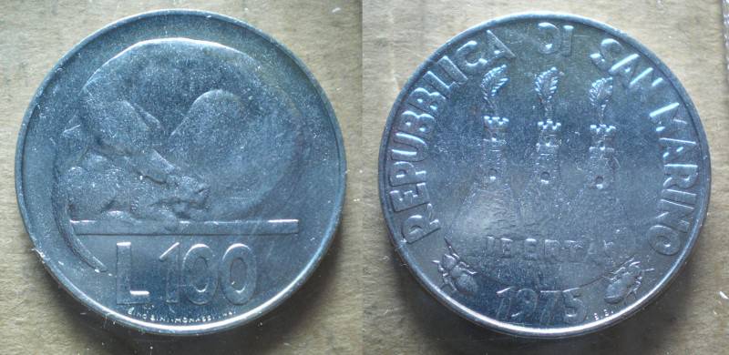 San Marinas 100 Liru 1975 UNC Nuo.1 Lt
