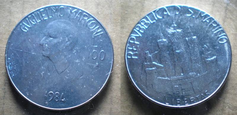 San Marinas 100 Liru 1984 Markoni UNC Nuo1 LT.