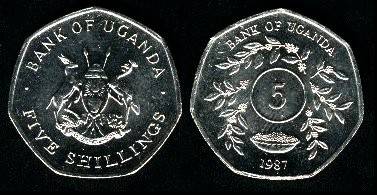 Uganda 5 šilingai 1987 m., KM#29, Unc