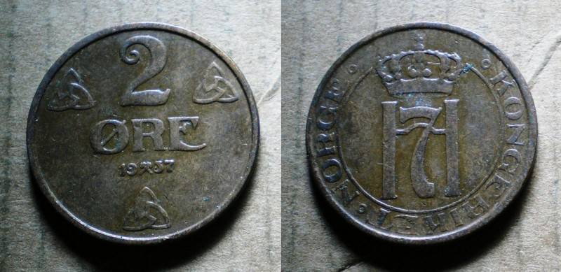 Norvegija 2 Ore 1937 Retoka Puiki Nuo1LT