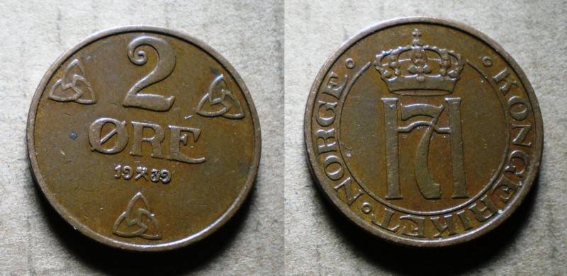 Norvegija 2 Ore 1939 Retoka Puiki Nuo1LT