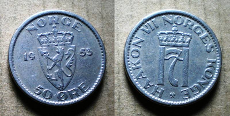 Norvegija 50 Ore 1953 Retoka Puiki Nuo1LT