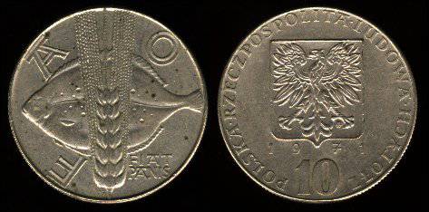 Lenkija 10 zlotų 1971 m. FAO, KM Y#63, VF+