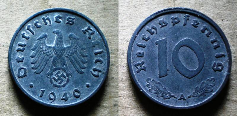 Vokietija 10 ReichsPfennig 1940A Nuo1LT