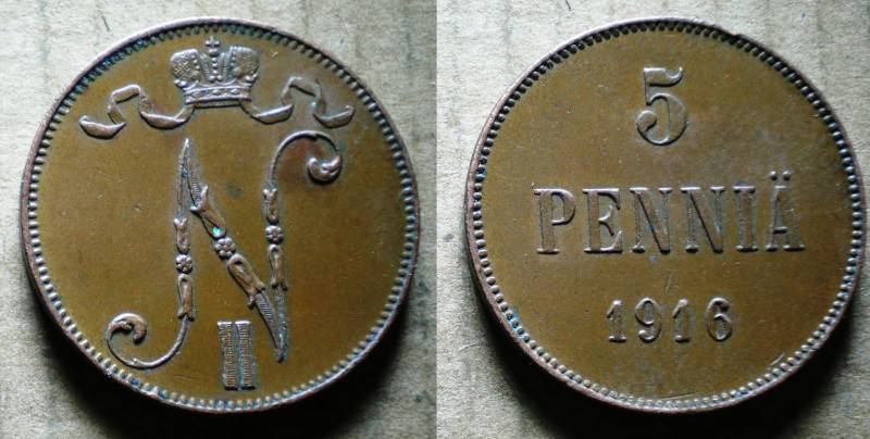 Rusija-Suomija 5 Pennia 1916 Puiki Nuo.1 Lt