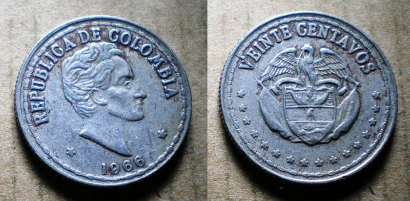 Kolumbija 20 Centavos 1966 Puiki Nuo.1 Lt