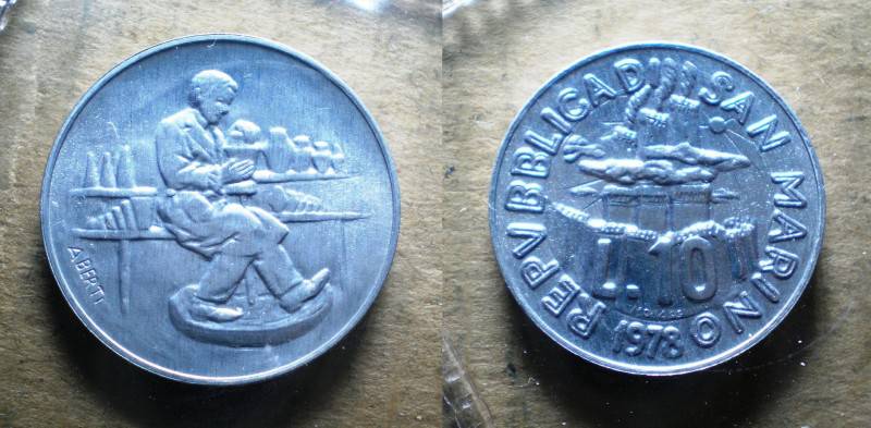 San Marinas 10 Lira 1978 UNC Nuo.1 Lt