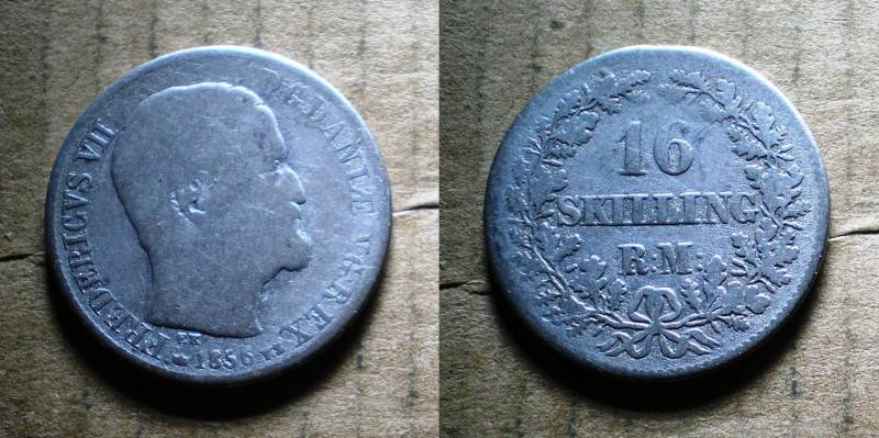 Danija 16 RM Skilling 1856 Sidabras RetokaNuo.1 Lt