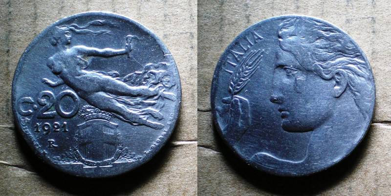 Italija 20 Centimes 1921 Nuo 1LT.