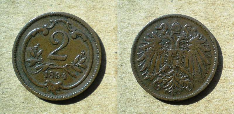 Austrija 2 Heller 1894 Nuo 1 Lt