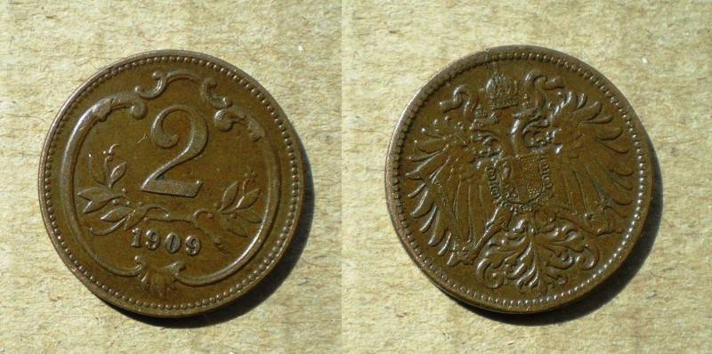 Austrija 2 Heller 1909 Nuo 1 Lt
