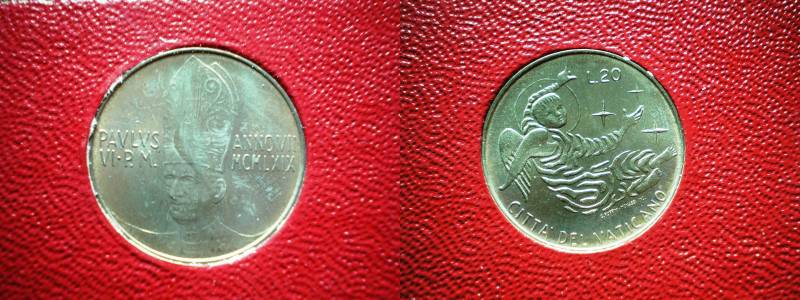 Vatikanas 20 Liru 1969 UNC Nuo 1LT.
