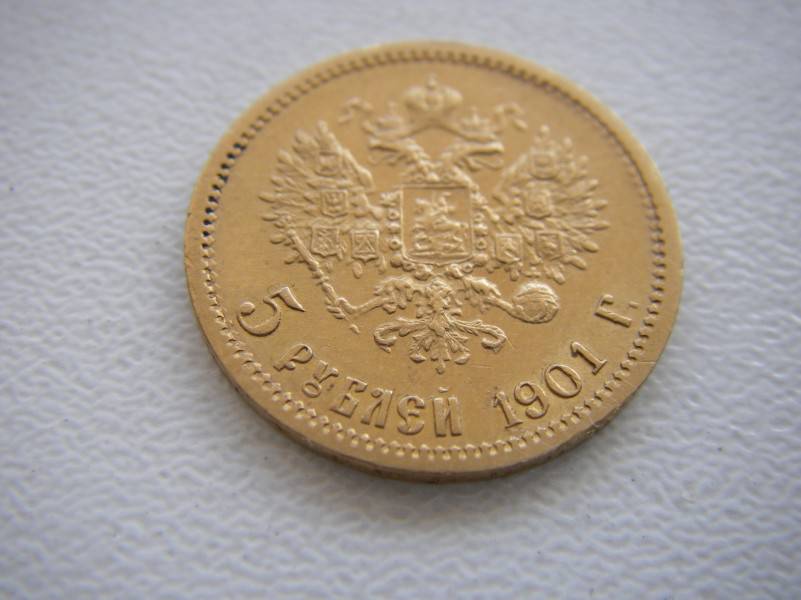 5 rubliai, AU, 1901m retesni metai, stovis superinis, svoris 4,30 gr.