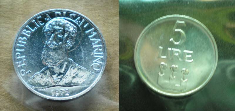 San Marinas 5 Liros 1972 UNC Nuo1 LT.