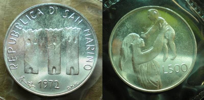 San Marinas 500 Liru 1972 Sidabras UNC Nuo1 LT.