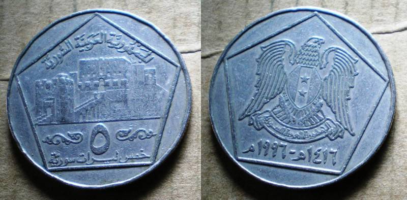 Syrija 5 Piastres 1996 Nuo 1 Lt