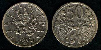 Čekoslovakija 50 halerų 1948 m., KM#21, VF+