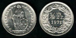 Šveicarija ½ franko 1971 m., KM#23a.1, Unc