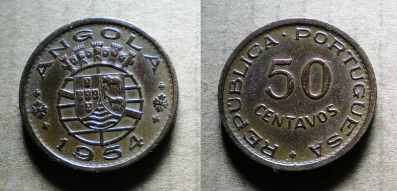 Angola 50 Centavos 1954 Retoka Puiki Nuo 1LT