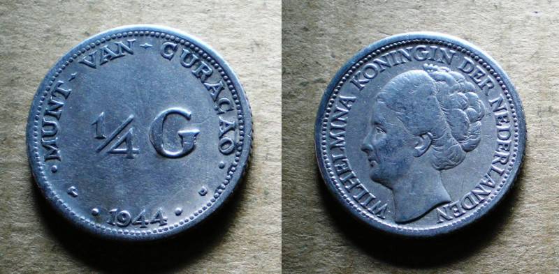 Curacao 1/4 Gulden 1944 Sidabras Nuo 1 Lt