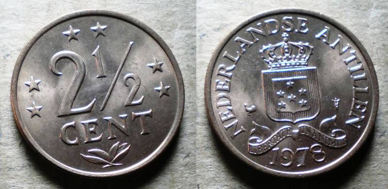Antilai 2 1/2 Cent 1978 Bronza UNC Nuo 1 Lt