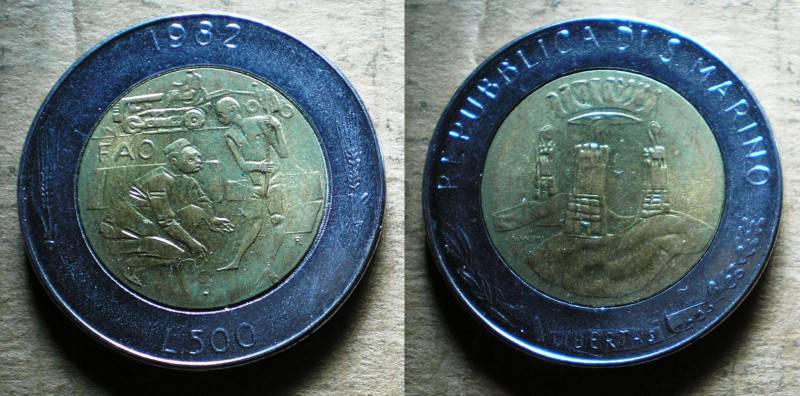 San Marinas 500 Liru 1982 Bi-Met UNC Nuo.1 Lt