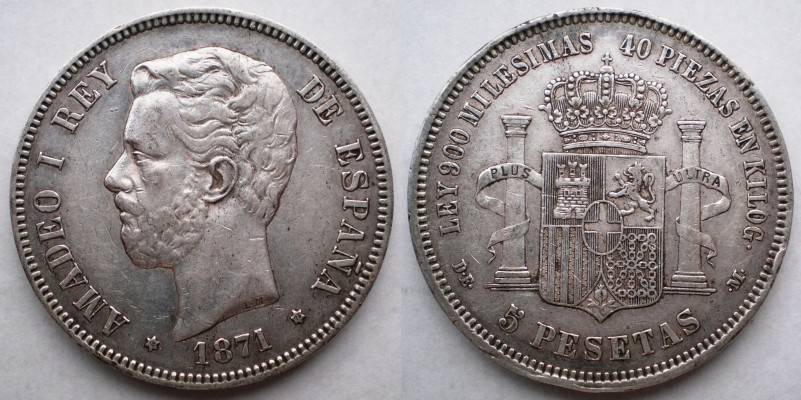 Ispanija 5 Pesetas 1871 Sidabras Puiki Nuo.1 Lt