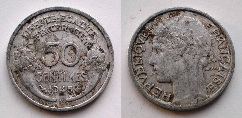 Prancuzija 50 Centimes 1945 B Nuo 1 Lt
